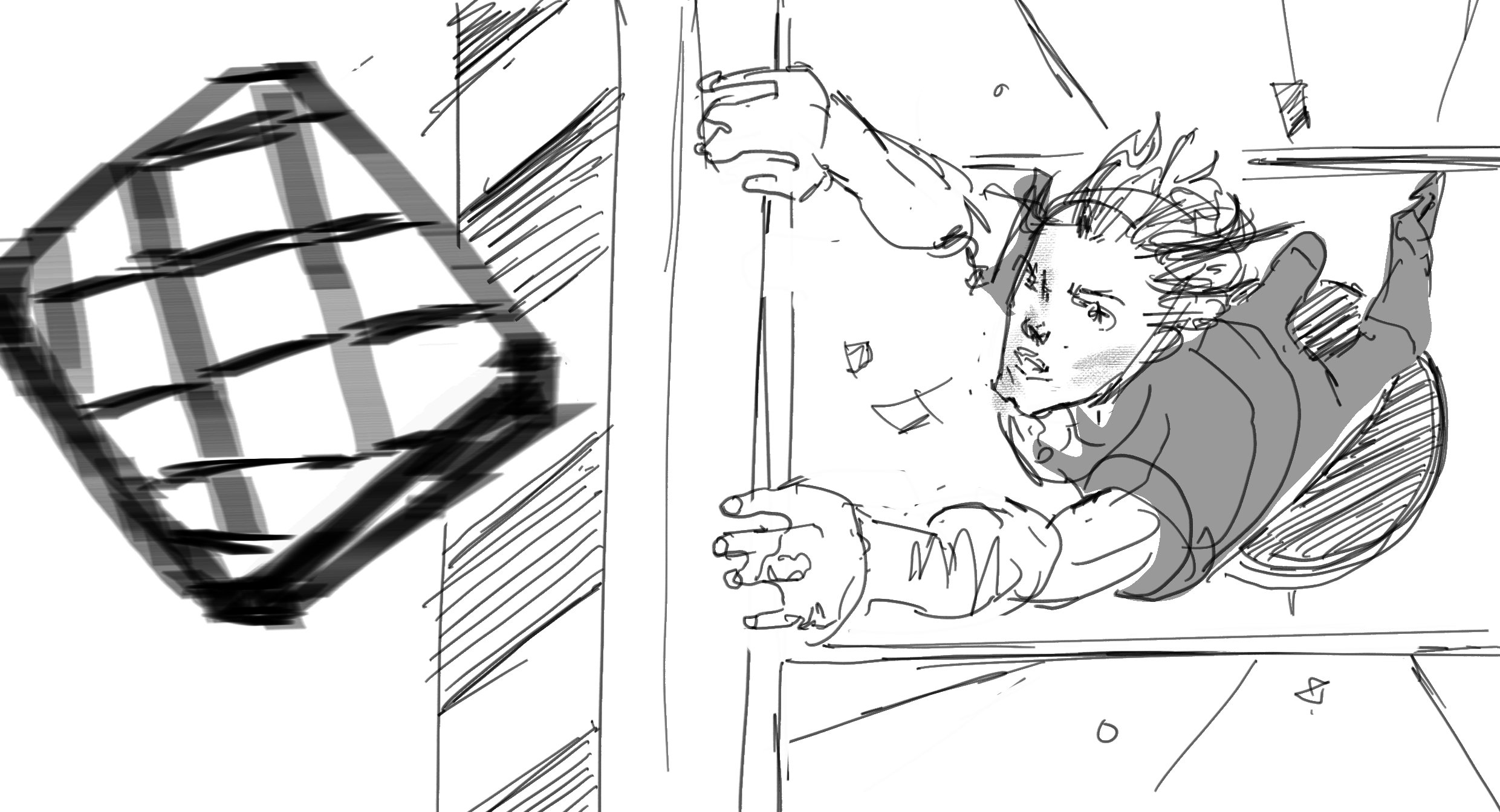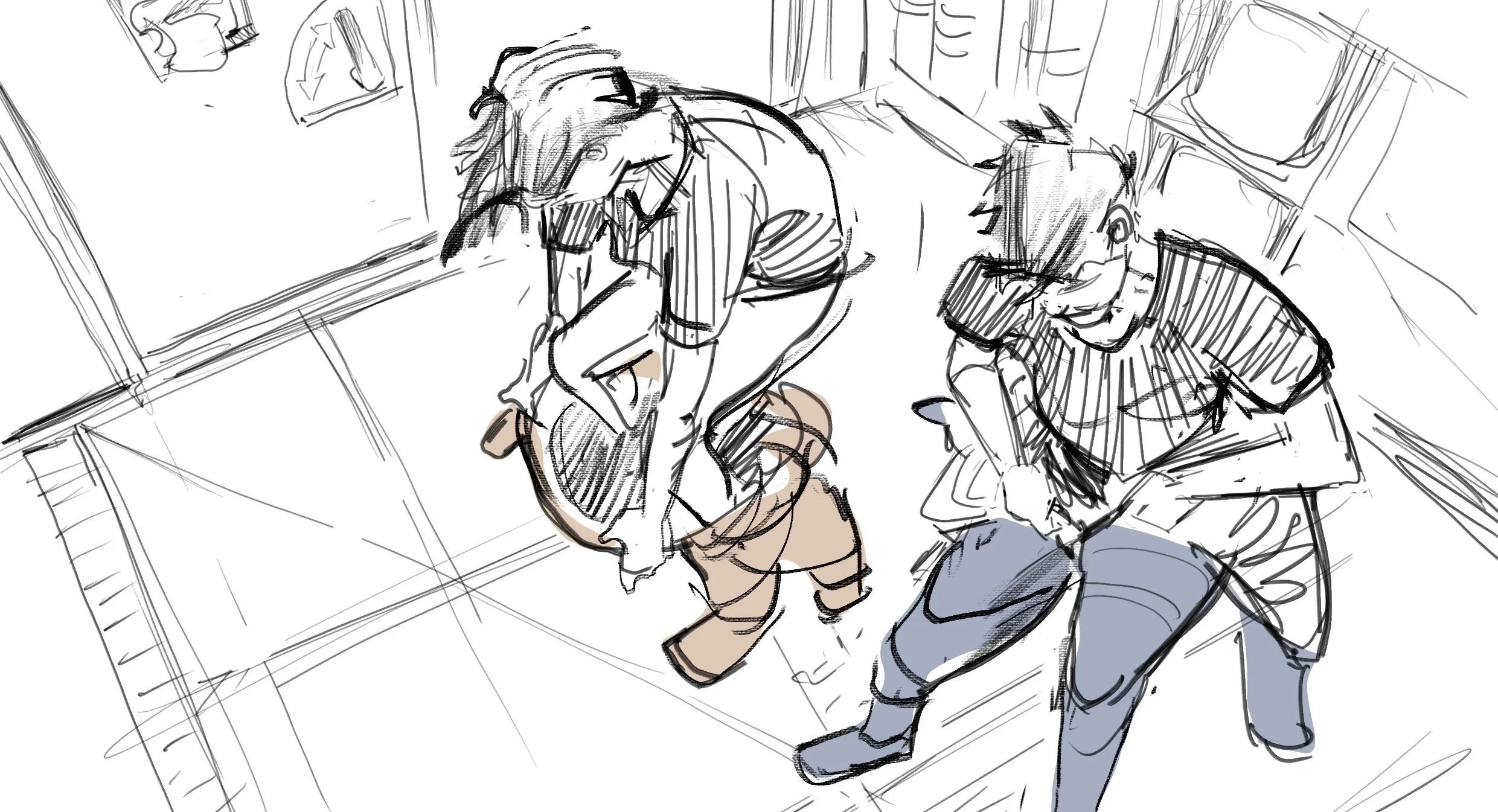 Something that is hard to express, is when you get swept up in a sequence, when you are really on a roll. You can enter the emotional space of the characters. When I get in the zone. I’m gritting my teeth and feeling the movement and sensations in my body. How would I frantically dodge a knife thrust to the gut? This will inform the initial gestures of the drawings which is something that’s carried over from the dynamic figure drawing classes back at SVA. Mike Mattesi has carried this mantle for many years, I had his mentor and Mike back then. I need to track down his teacher’s name*(JAMES MCMULLAN!!!)